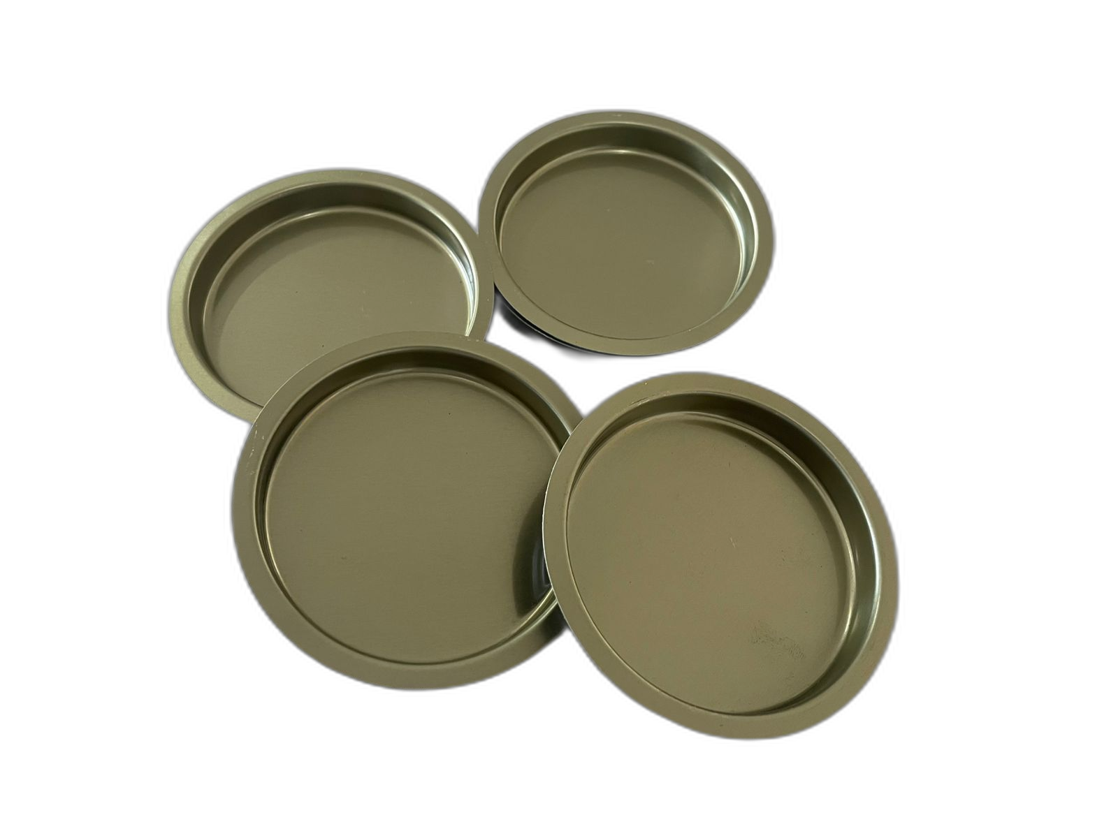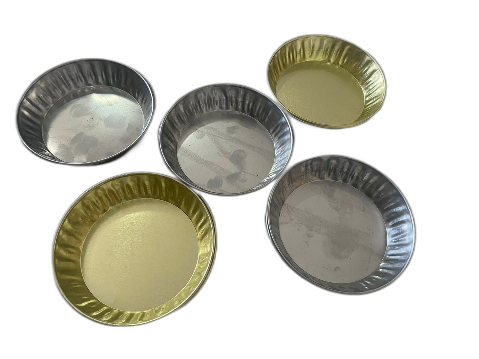 Embalagem metálica desenvolvida para o acondicionamento de empadas, tortas doces e produtos similares, garantindo integridade, conservação e apresentação adequada para comercialização e consumo.