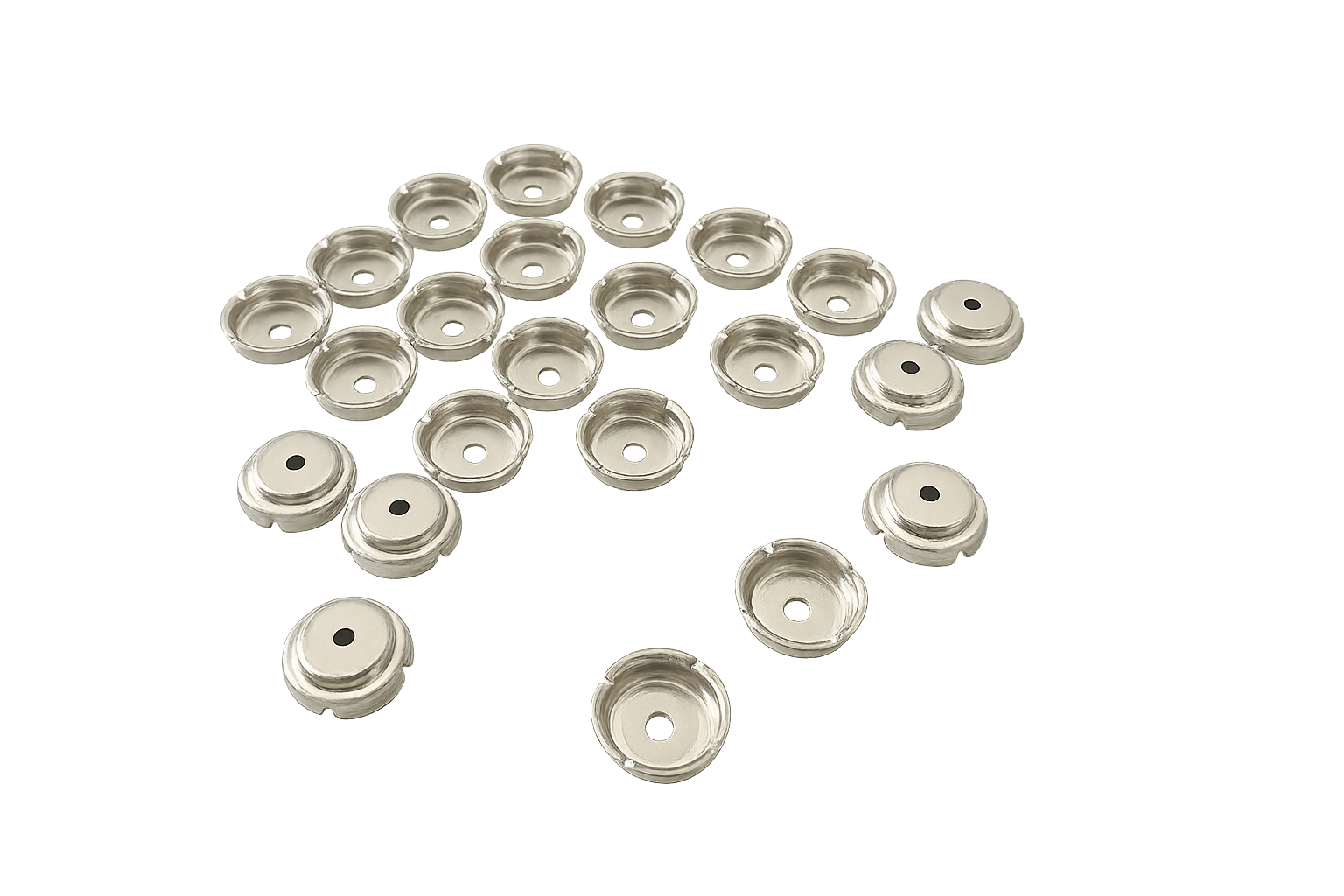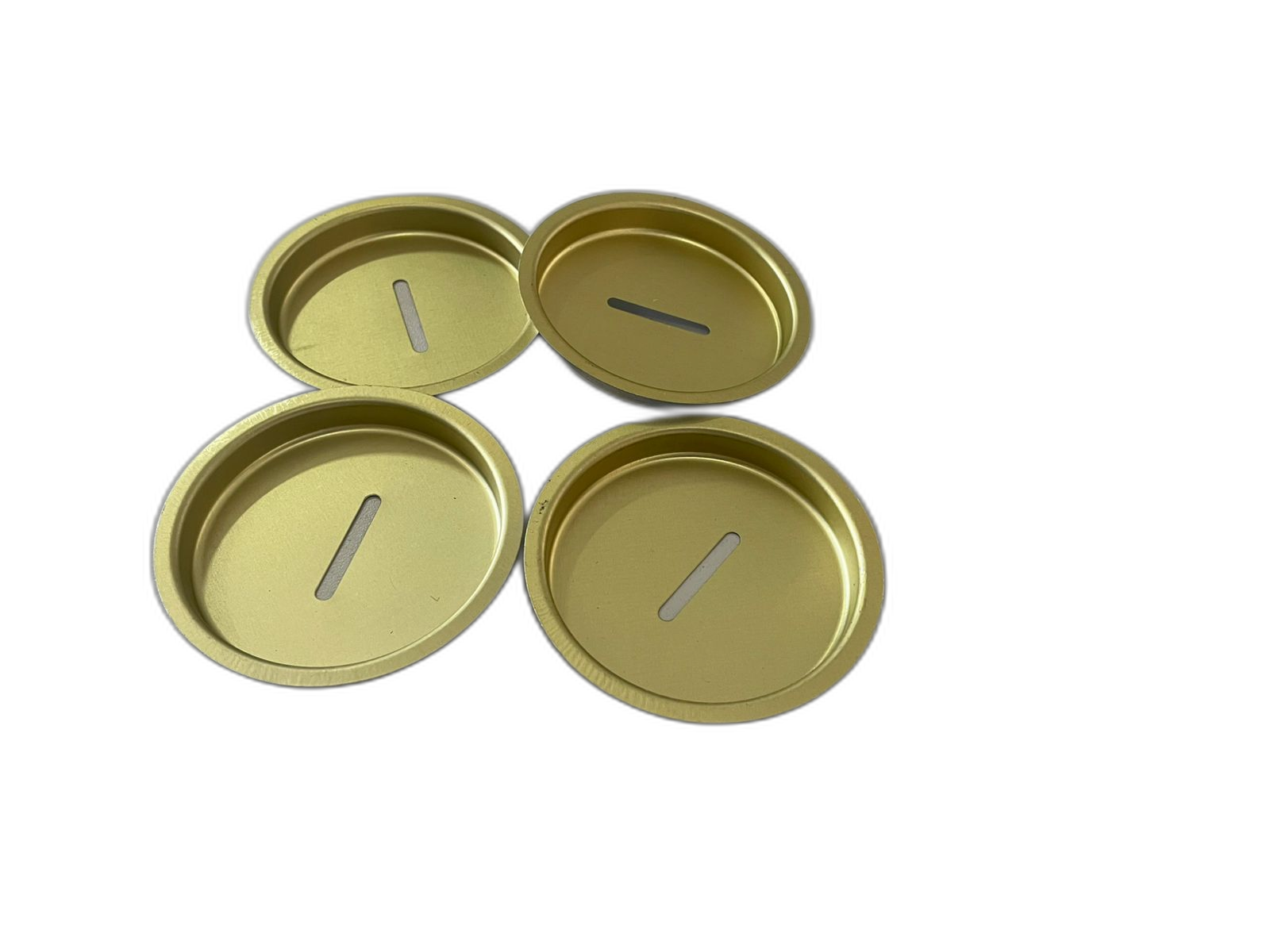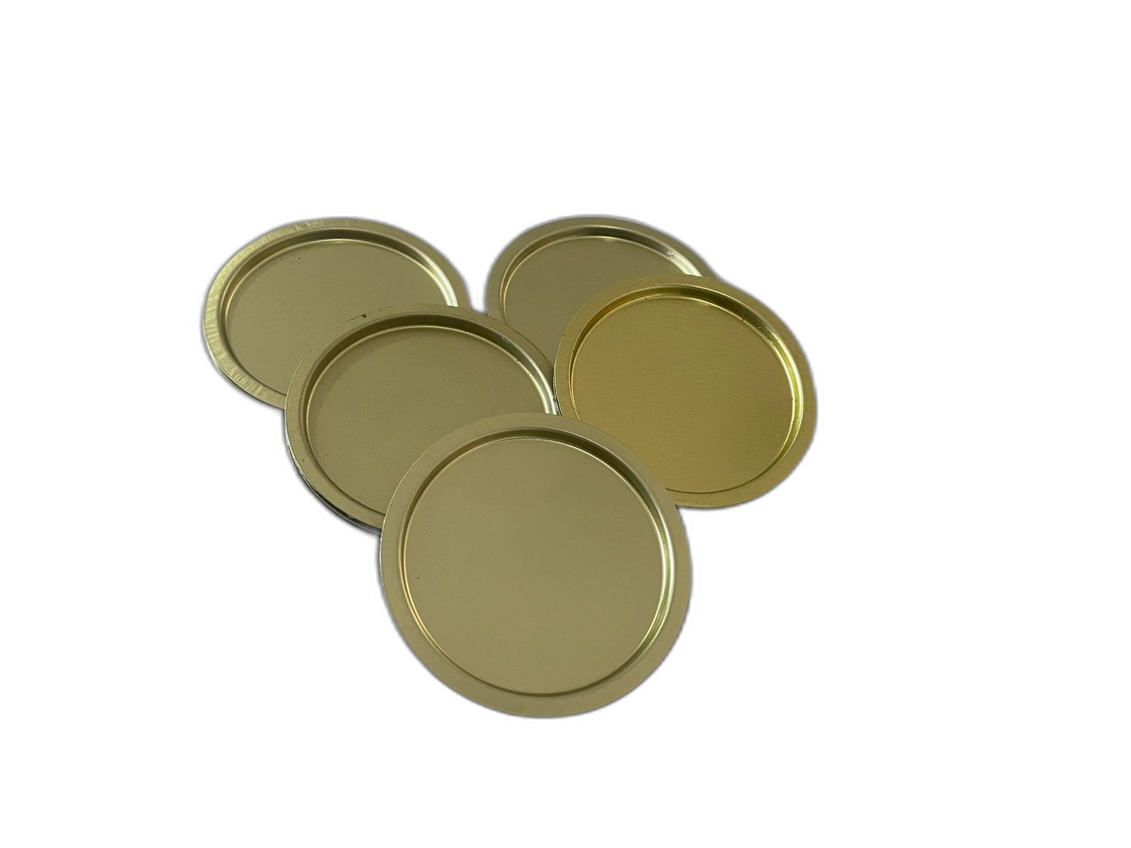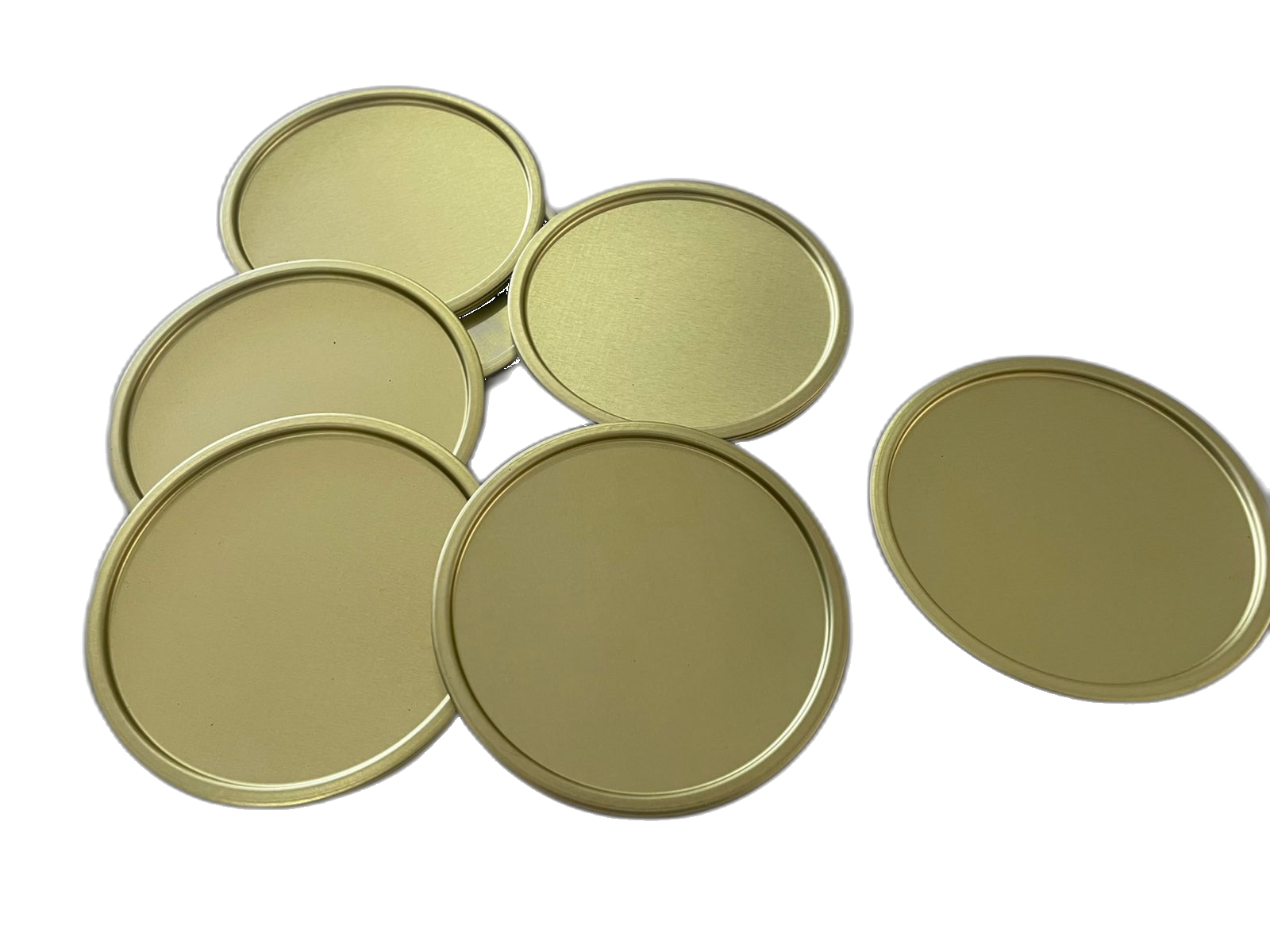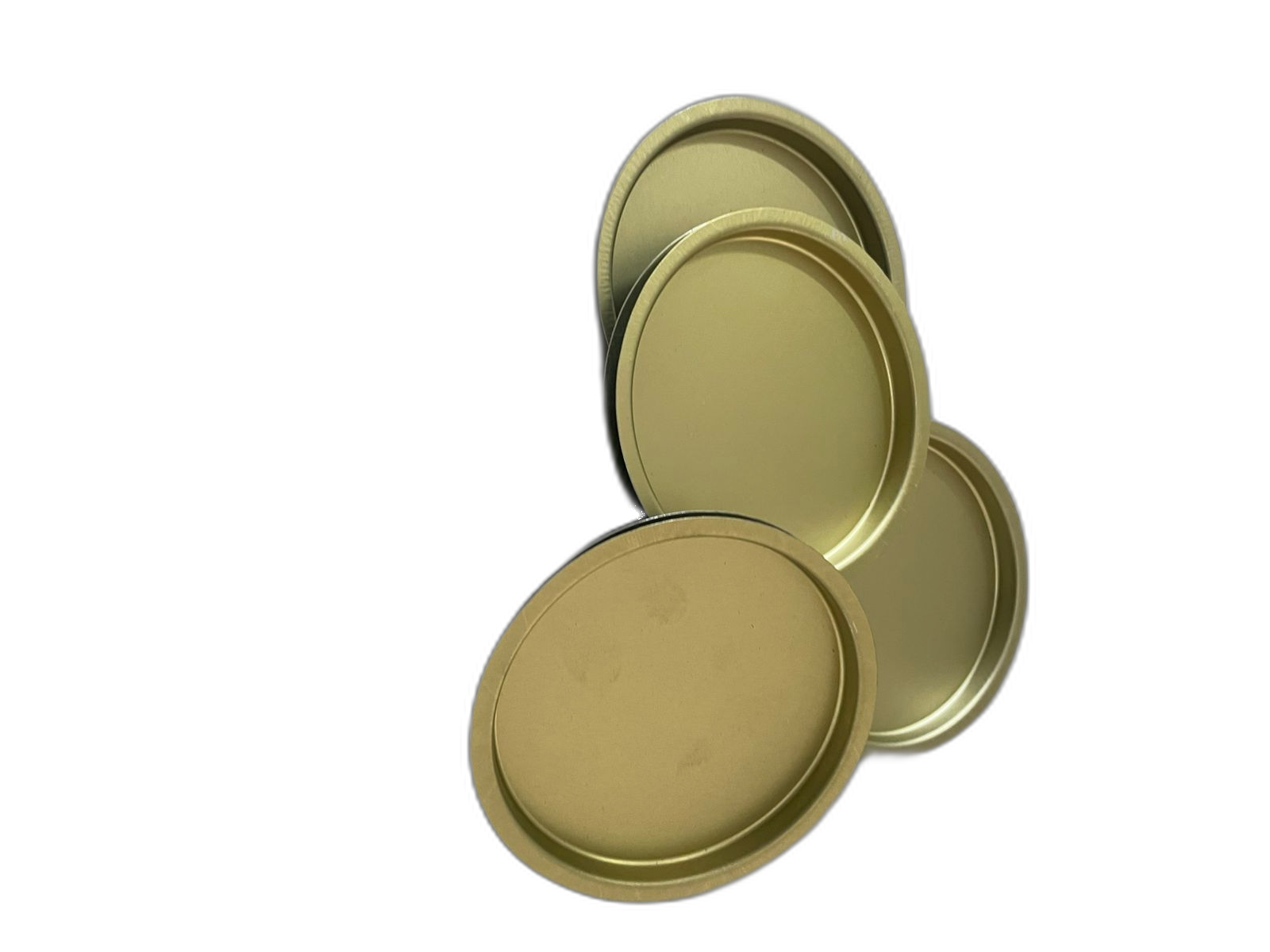 Tampas metálicas com diâmetros de 60 mm a 130 mm, aplicadas em embalagens cilíndricas de papelão com tampas e fundos de aço, destinadas ao acondicionamento seguro de diversos tipos de produtos, garantindo vedação, resistência estrutural e conformidade com padrões logísticos e industriais.