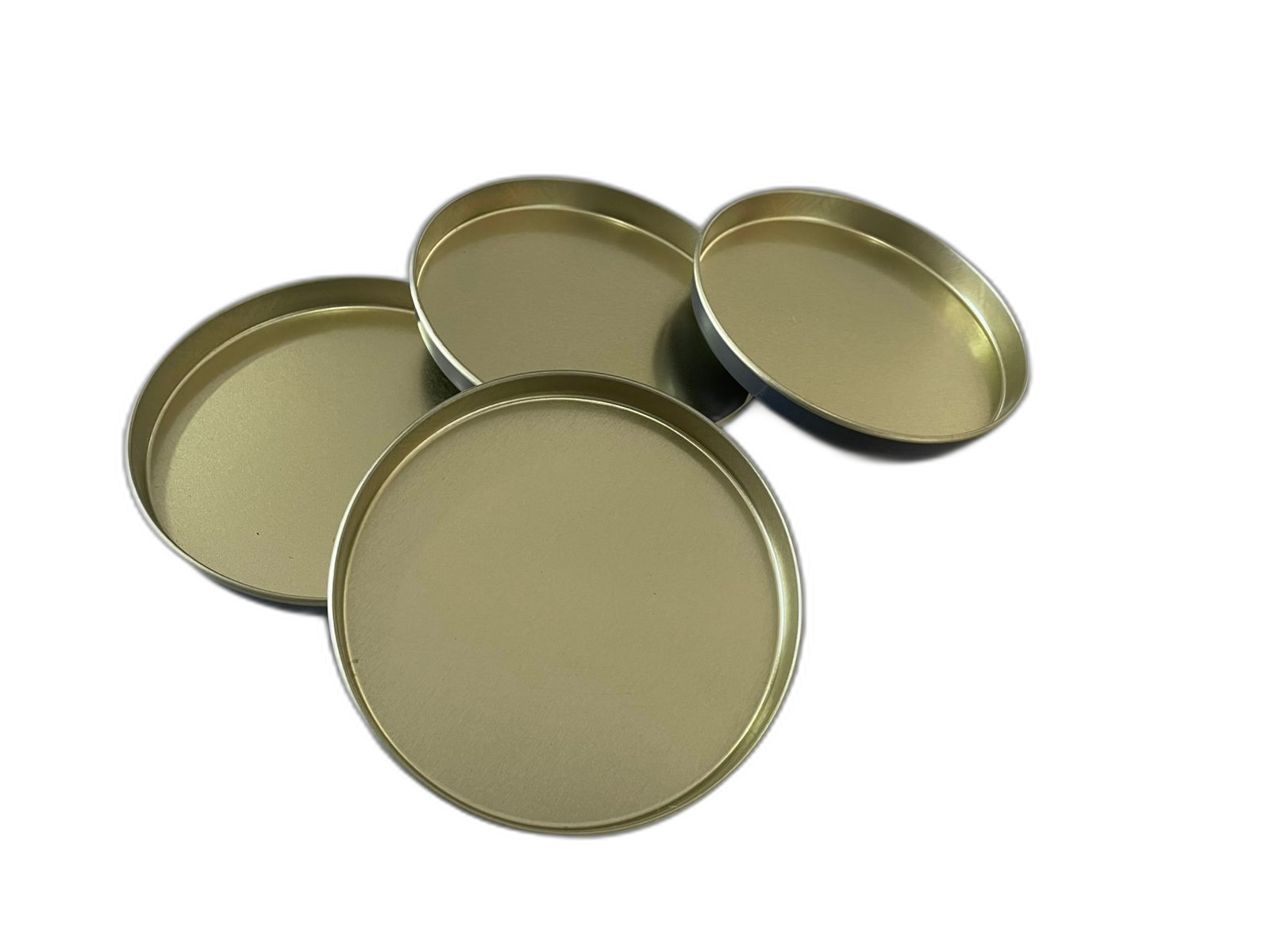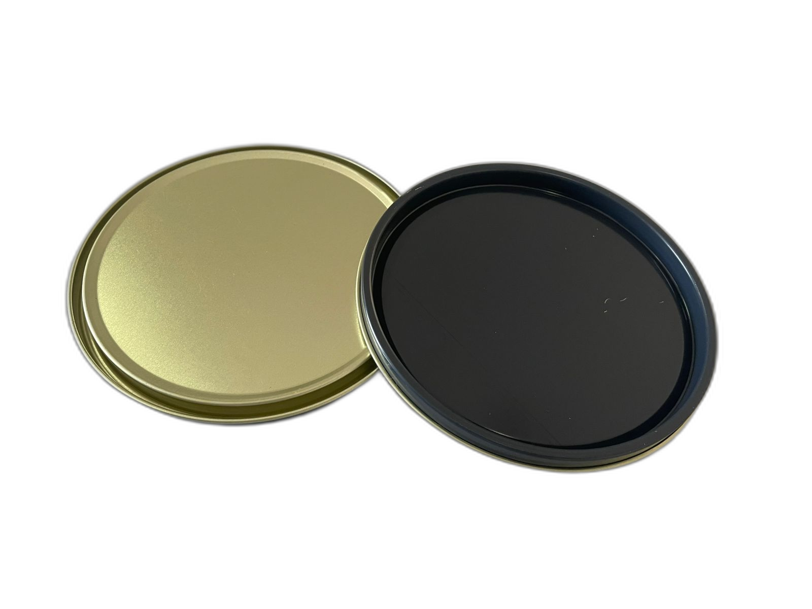 Embalagem composta por tampa e fundo metálicos envernizados, projetada para o acondicionamento de cremes e produtos de consistência pastosa, oferecendo vedação eficiente, proteção contra contaminantes e adequada apresentação comercial.